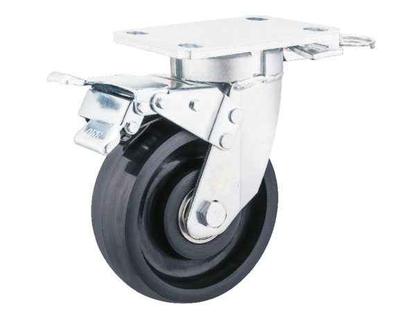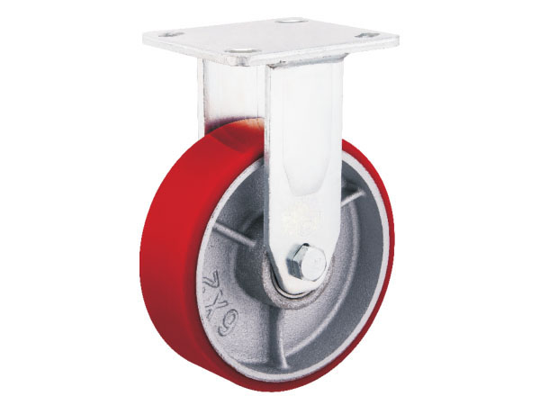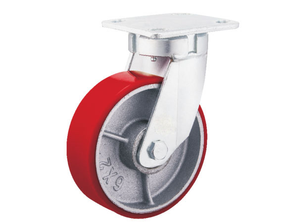 A1重型(PU系列)6公厘鋁芯平面紅色PU輪-平底雙剎